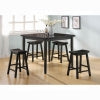 The Gaucho 5PC Pack Counter Height Dining Set offers simplicity with a versatility perfect for any small dining space. This set boasts an space saving design, square leg table and four matching saddle style stools. The Table features a Solid Wooden Top and square legs in Black finish. The Saddle Stools include wooden seat and square legs complemented by 4 footrests supports. (Assembly Required)