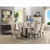 The Gerardo dining collection delivers an elegant approach on rustic inspired design, and tapered profile with a white marble top for a deliciously modern serving of mixed media style. The fashion side chairs & arm chairs feature in a soft fabric and wooden tapered weathered espresso finish legs. You've designed your ideal table, from top to bottom in just the right size.