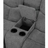 Functional and comfortable the Kalen living room collection makes it easy to unwind. With endless features to make entertaining guests a breeze. The sofa features a drop-down table and reclining functions. Choose between a standard loveseat or a loveseat that includes a console with two cupholders and a flip-top storage space, ideal for keeping remotes handy; both offer reclining functions. The recliner chair features a glider mechanism. The soft chenille upholstery and pocket coil seats mimic a cloud.
