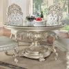 This round Sandoval dining table is ideal for intimate gatherings or smaller dining spaces, as it encourages conversation and a sense of togetherness. The single pedestal base of the table is a true work of art. Meticulously carved; it showcases intricate details and ornate patterns, adding a touch of sophistication and drawing you in visually. The base's carvings are designed to be seen from the tabletop, providing a focal point that adds depth and dimension to the overall design.